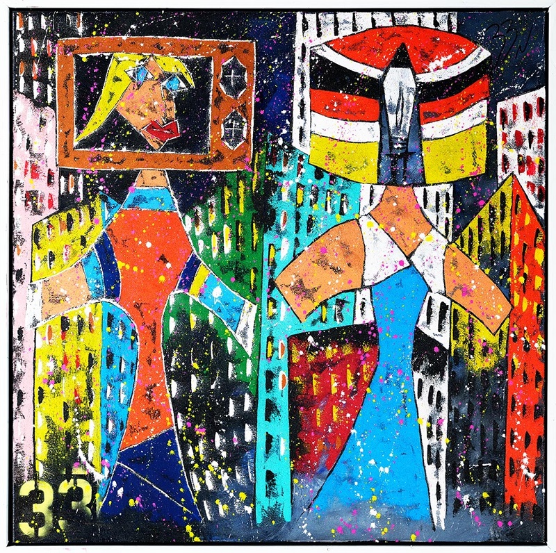 Christian Calvin—also known as 33N Art—is a popular artist from Tennessee well known for his abstract paintings and mixed-media art that play with the conventions of Pop Expressionism.