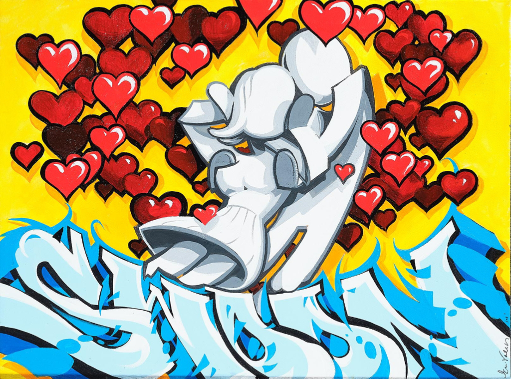 The list of awards and accomplishments in Erni Vales career is staggering, but some of the highlights include the 70 subway cars he painted that have become part of an open air free public gallery of art in NYC and the influence that work has had on accomplished young artists worldwide. In addition, Vales painted the rainbows on Mariah Carey’s body for her Rainbow album, painted the LV logo on L’il Kim’s body, and graffitied Eminem’s face for a Rolling Stone Magazine photo shoot. He has designed 15 restaurants and nightclubs, most recently in Moscow, and worked for almost every corporation, including having his own jewelry line and a sold out line of watches with Invicta. But Vales proudest artistic achievements to date are being the first graffiti artist to open his own exclusive gallery in the heart of Wynwood, Miami, and in 1993, creating, developing, and being the first graffiti artist to do a faux 3D piece on a wall in LA. This artwork changed the game and gave rise to a second culture of graffiti and it spurred on the release of his 2nd book, 3D Street Art: Off the Walls.