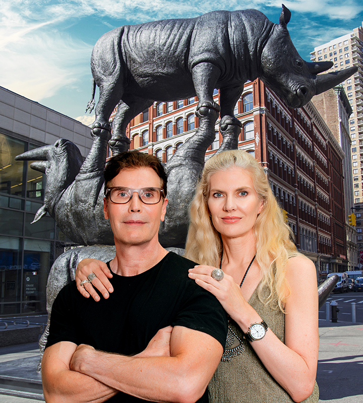 Writing, painting, sculpting, and other artistic pursuits are often solo endeavors, but Gillie and Marc, have formed a perfect union that marries purpose with passion unlike any other artistic team in human history. Gillie and Marc Schattner, more commonly known simply as Gillie and Marc, or in their sculpted public art form as Rabbitwoman and Dogman, are not only world-renowned for their wildlife sculptures and vibrantly playful paintings but also for being ardent champions of endangered species and equality. The pair, who met over 30 years ago on a photoshoot in Hong Kong, have fused their unique and starkly contrasting backgrounds into a joint effort to produce innovative art and raise funds and awareness for a myriad of societal issues through messages of love, equality, and conservation.