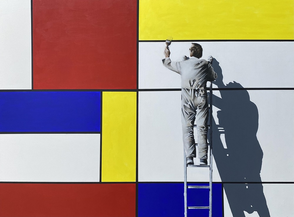 Flanagan’s other ongoing series include his farcical “Syndicate” paintings, which depict a band of gangland characters using animal forms for the personas, and his “Refresh” series, comprised of large-scale paintings that depict famous works of art and how, over time, even these iconic works may need a bit of cleaning and touch-up.
