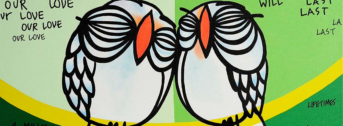 Lebo refers to his artistic style as “Postmodern Cartoon Expressionism,” combining abstract imagery, cartoon drawing, bold hues, and calligraphy together in a narrative style to convey emotion and story.