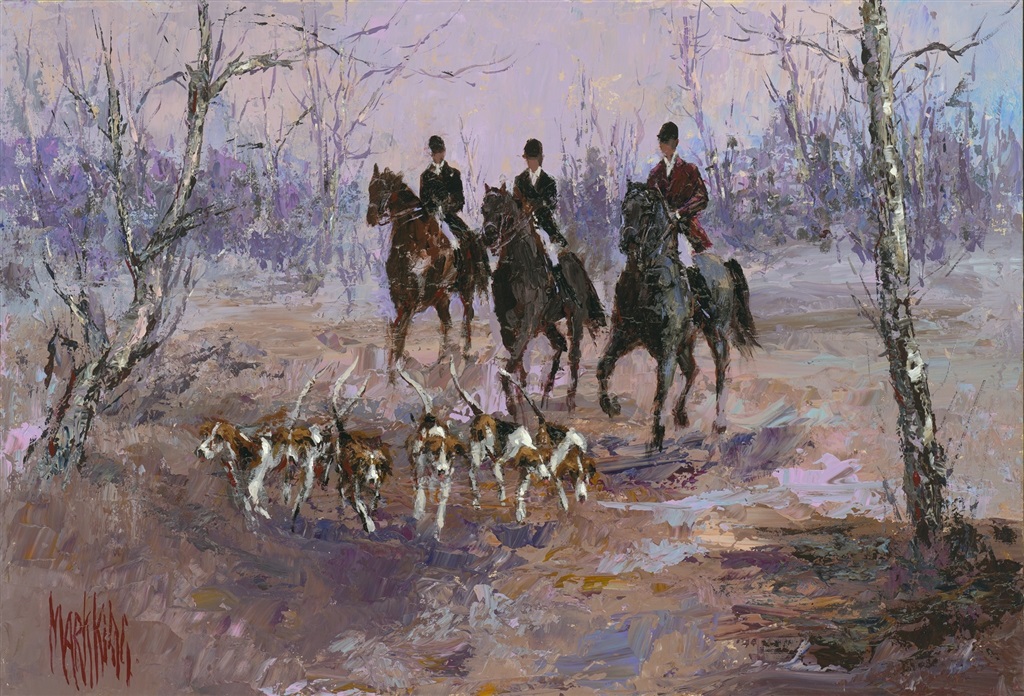 King follows in the footsteps of Courbet and the Impressionists, painting what he sees, such as the familiar streets, monuments, and quarters of Paris. King never fully defines his seductive faces and figures, which he often shows from behind, as if they too were silent observers like himself. Passionate about horses since his youth, King’s animated depictions of polo and the fox hunt derive from personal experience. His interest in big game dates from India, where elephants and camels roam the streets and tigers and other large cats can easily be seen in their natural habitat.
