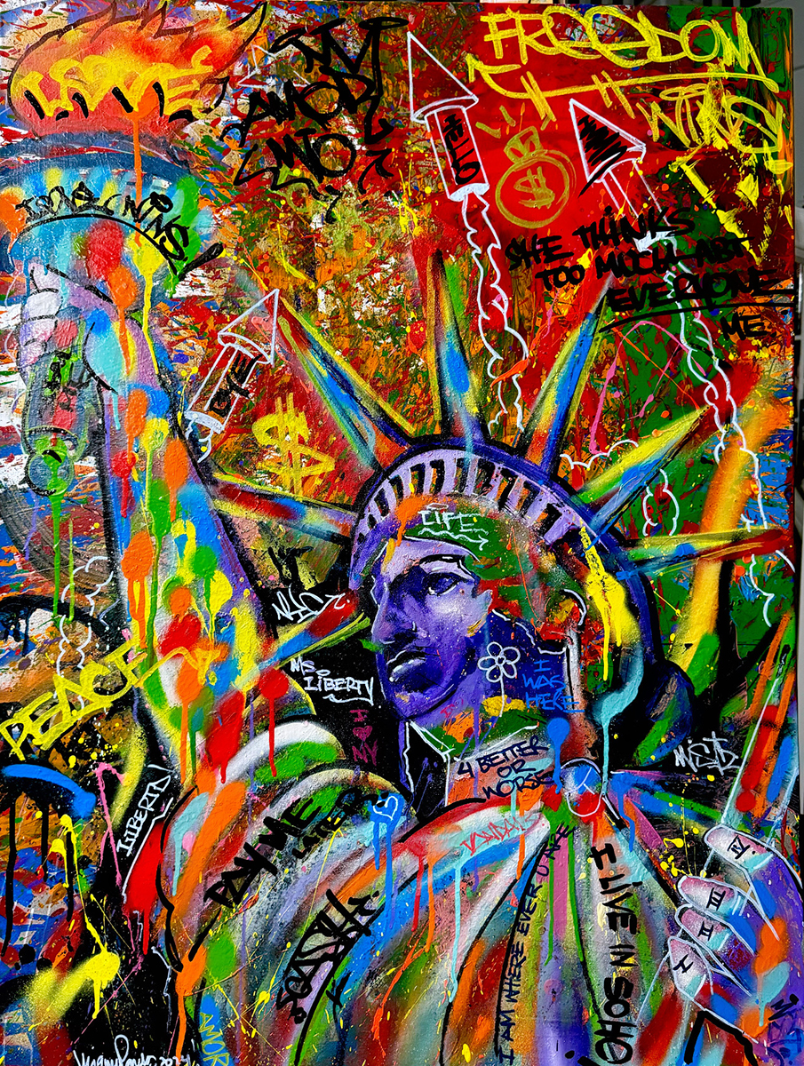 Whenever and wherever the art of Miguel Paredes is on view, it’s show time! This quintessential New Yorker combines a bit of Broadway with a dash of Tokyo’s fabled Ginza, Seoul’s Gangnam style, Miami’s South Beach and the Vegas strip in his utterly original, high-energy art. He has captivated a global audience of fans who adore his gifts for storytelling in painting, sculpture, murals (including 3D murals), fashion, NFTs and an animated TV series. With a collector base that stretches from Manhattan to Tokyo, Paredes is an international presence on the art and entertainment scene.