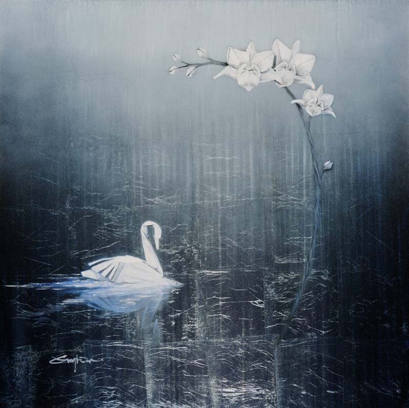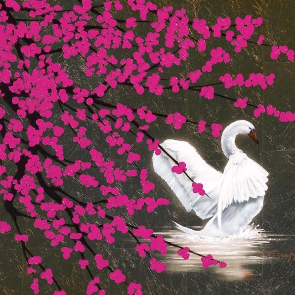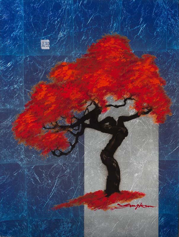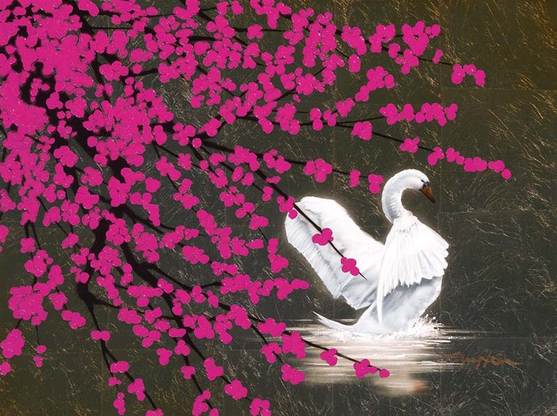 Guyton’s leafing technique inspires many of the subjects he portrays—he doesn’t like to include “heavy” or “harsh” imagery in his artwork. He enjoys exploring Asian themes in a minimalist style to evoke a zen-like serenity in viewers.