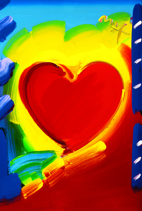 Pop artist Peter Max is known for including hearts in his art. His love of movies, spirituality, comic books and music influenced his style at an early age, as seen with his choice of bold colors and outlines. Some of his most famous works use the love-inducing icon, such as “Angel with Heart.”