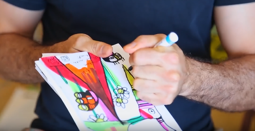 Lebo creates a colorful, spontaneous sketch for a lucky collector.