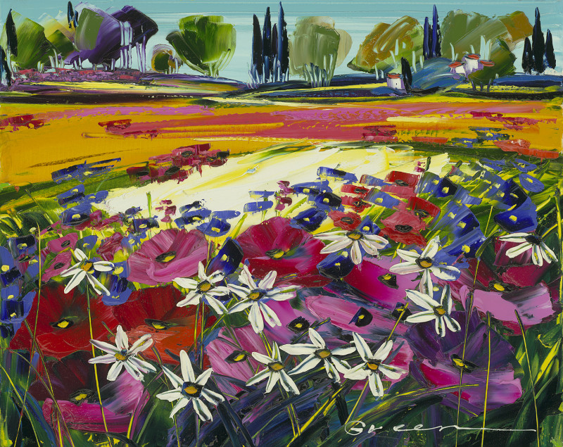In a slightly different vein, Mother’s Day can be about celebrating the wonders of Mother Nature, as seen in this floral painting by Maya Green. She says she seeks to break down life to its visual essentials, such as light, dark, balance and movement, and “capturing the essence of a moment.”