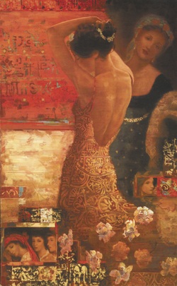 “The ornate style also allows me to incorporate emblems, images and ‘quotes’ from Master paintings that combine and build into a story. These narratives generally develop during the making of the painting as one image suggests another.