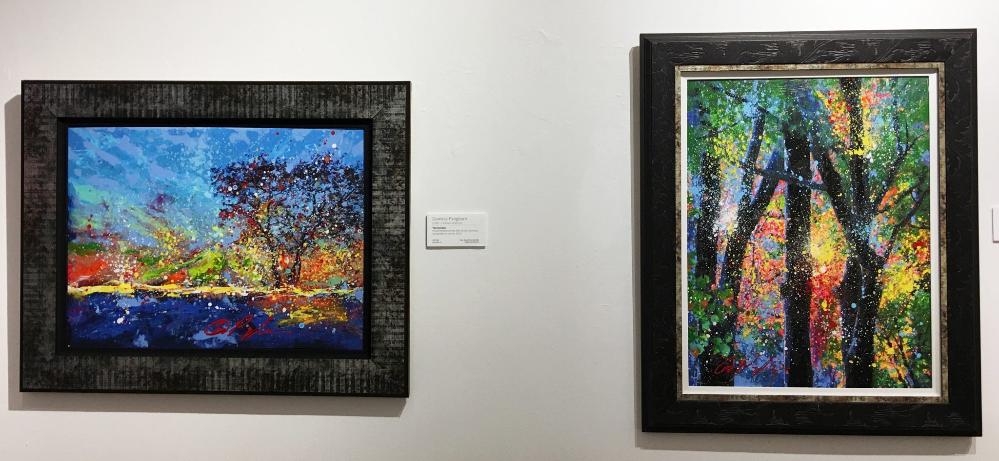 Gallery wall featuring Dominic Pangborn – “The Horizon” (2015), Dominic Pangborn and “Vibrant Forest” (2015), Dominic Pangborn