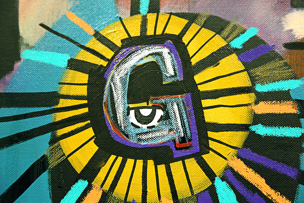 At the top of this is the letter “G” radiating light. This borrows from the masons, who Lebo says uses the symbol to represent God or geometry.