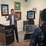 During the virtual tour, with the help of his wife Lori, Coleman showed off a half dozen of his new DMI works, including “Mated for Life,” an eye-popping pair of white swans set upon a jet black background amidst an explosion of purples and greens. The artist noted that the response to these marvelously vibrant DMI creations has been nothing short of “crazy.”