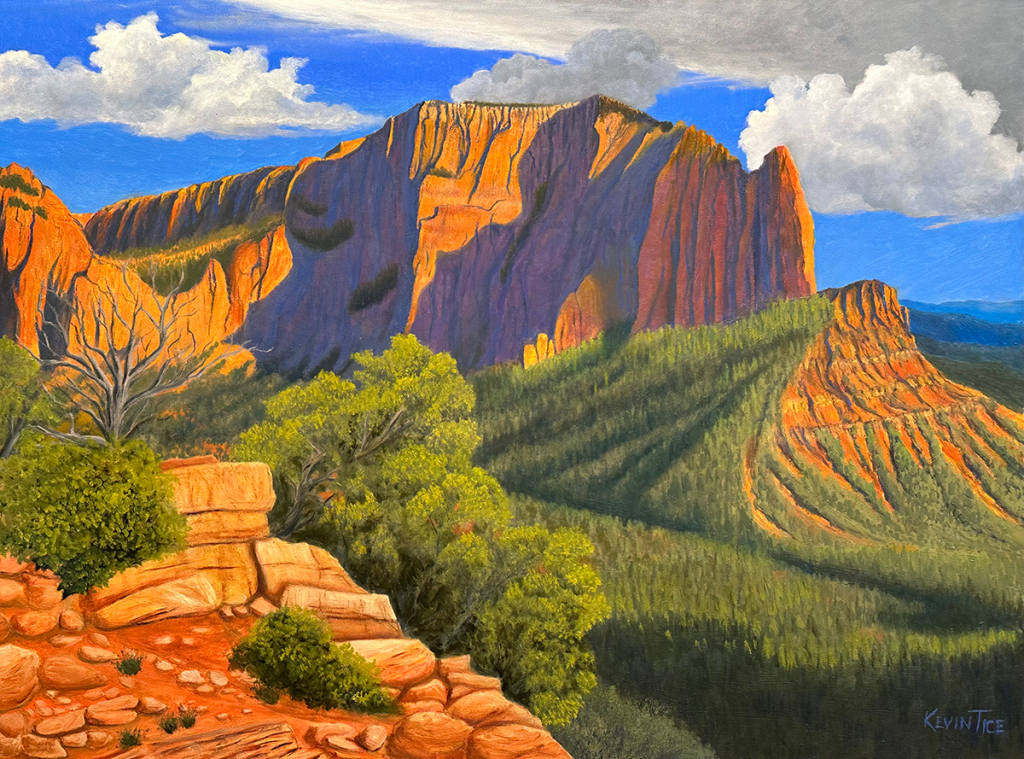 Kevin was born in California and was raised in rural Nevada. He now resides in Henderson, Nevada. He is a member of Oil Painters of America and American Oil and Acrylic Painters Society. He spent his youth outdoors and developed a love for drawing and painting while very young. While fulfilling a career in law enforcement, he continually improved his art through an unorthodox pursuit of art education. “I didn’t enjoy the formal approach to art education, so I set out to immerse myself in specific areas of interest, largely due to my own impatience to be able to paint what I was able to see and feel.” While Kevin also paints other subjects, creating a visual impression that recreates a perfect moment of light and atmosphere in elements of our landscape and evokes emotion for the viewer, is what he loves most.