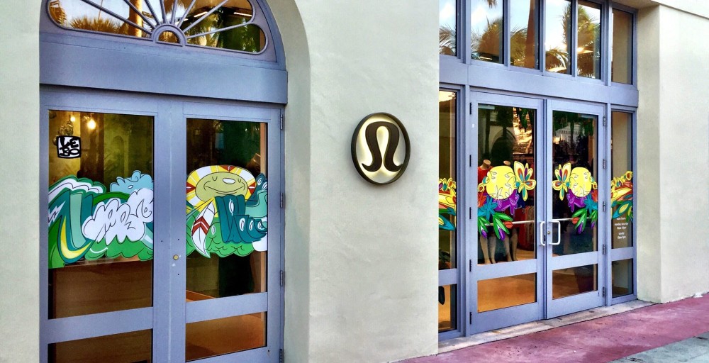 Lebo artwork in the widows of Lululemon’s Lincoln Road location (Photo courtesy of Rodger Reiter)