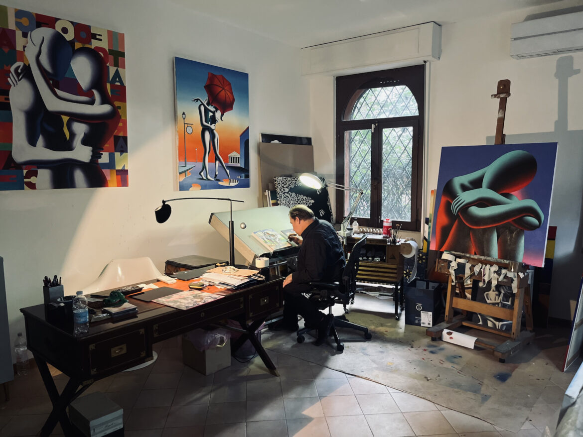 Rome, Mark Kostabi at work in his studio. Photo by Greesi Desiree Langovits