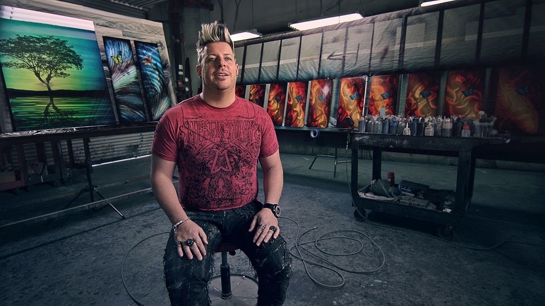 After creating his desired textures, DeRubeis applies layers of paint to build up the image, and then brushes the artwork with a final protective coating. The final result is artwork that gives the illusion of movement when spectators view it from various angles.
