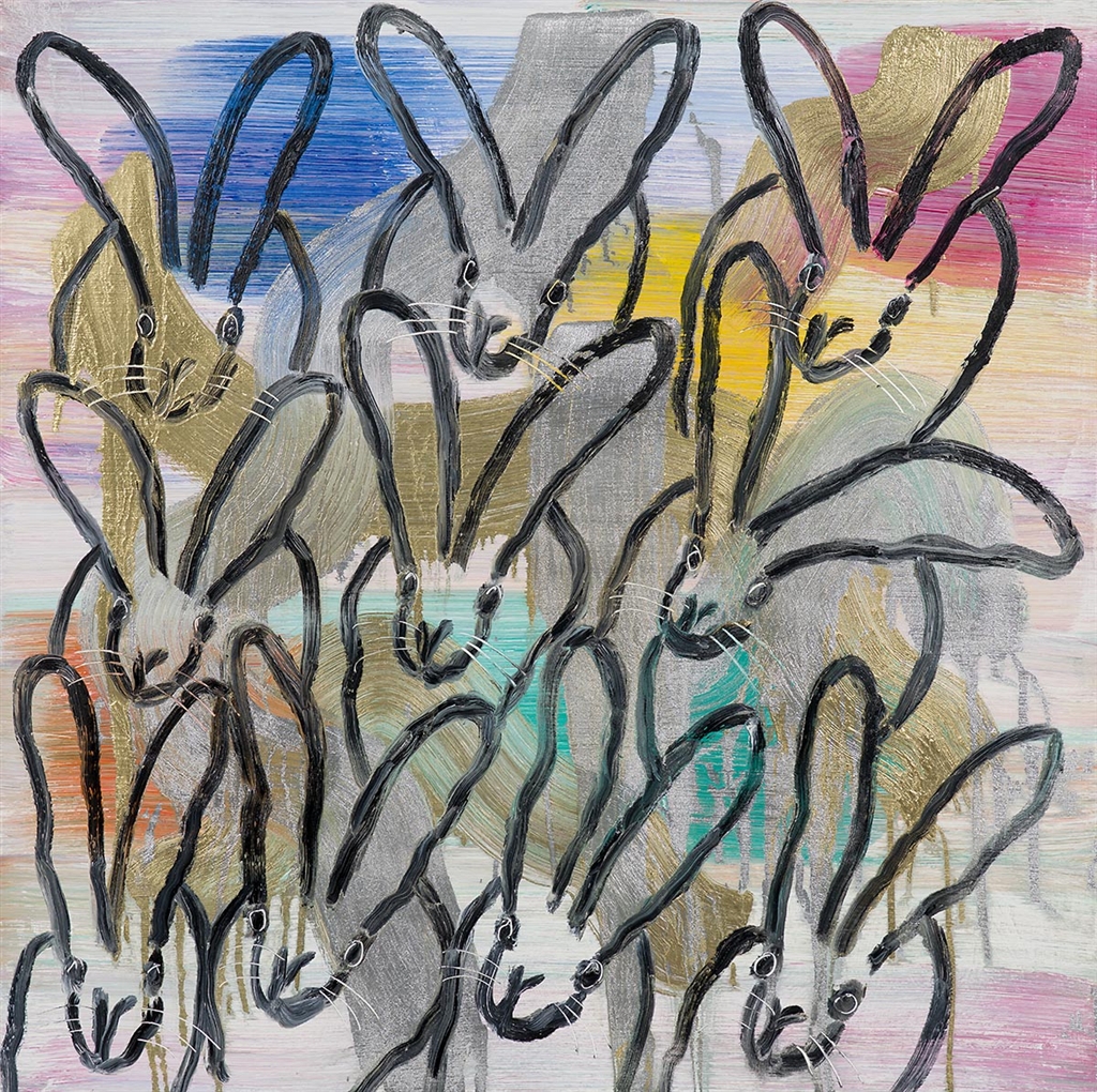 While the butterfly flutters continuously in Slonem’s world, it is the bunny rabbit that has come to define his art for many collectors today. Hunt Slonem paints A LOT of bunnies and is happy to be associated with what he considers a positive, pleasant symbol – one of luck and productivity. And productive he is! Slonem has stated that he paints five days a week and always starts with rabbits, which he hangs in large groups of 50 or 100!
