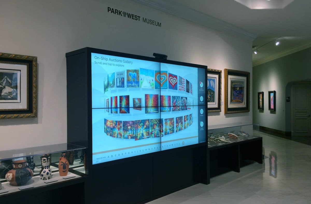 Located in Park West Museum—the ground floor of Park West Gallery’s headquarters in Southfield, Michigan—the large display provides visitors with a new way to explore the gallery’s massive collection. Users can look up information about artists, view award-winning videos profiling the artists, learn details about specific works of art, and even let gallery staff know they’re interested in collecting a work of art.