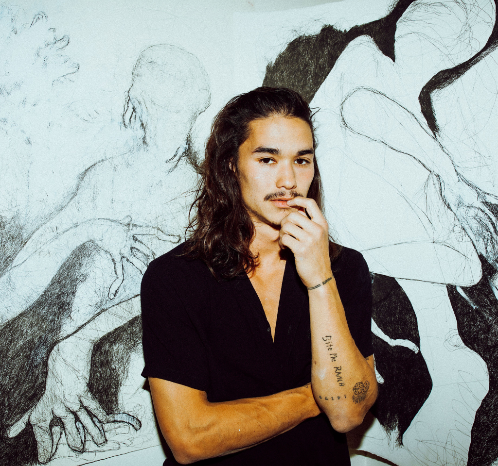 Art is something that Booboo Stewart has been using as a way of exploring emotions and processing joy and grief throughout his entire life. Before his exhibit moved to Las Vegas, the artist told us that with his pens and paper as a medium for self-expression. His artwork plumbs the depths of his family history and experiences in and out of romantic relationships, but Stewart is quick to note that the best part about showing art for him is learning about how others see and feel it, and knowing that they will assign meaning to each of his works of art that speaks to their longing and experiences.