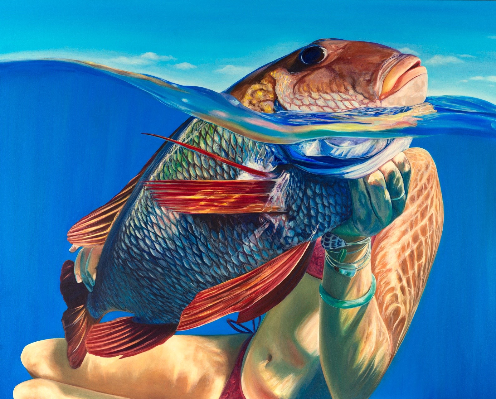Vaughn was born and raised on Oahu and graduated with her BFA from the University of Hawaii at Manoa in 2021. She is a photo-realist oil painter, and her winning compositions wonderfully capture dreamy, intricate portraits of her local spearfishing dives.