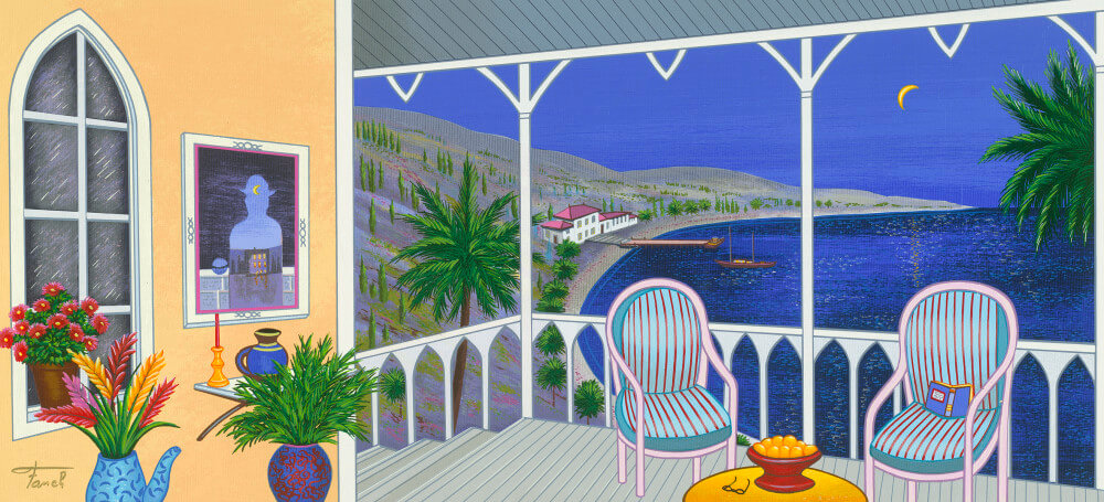 Others, such as Fanch Ledan, paint ideal scenes from lovely homes and apartments, providing a unique room with a view perfect for a romantic getaway. For those looking for a quiet place by the water, the artwork of David Najar offers escapes to ideal locations in nature.