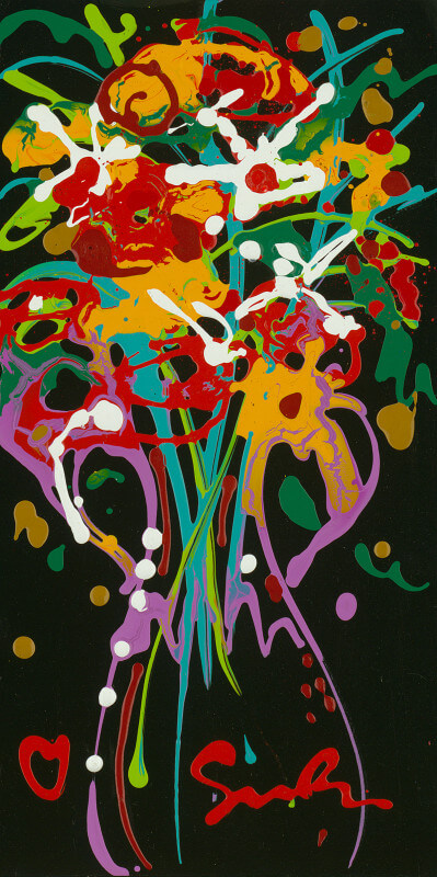 Few holidays or occasions call for a bouquet of flowers more than Valentine’s Day. Many artists love to paint these beautiful gifts, such as the photorealistic flower art of Lyn Diefenbach or the more impressionistic flora of Simon Bull. Artist Dominic Pangborn paints floral art on both sides of the spectrum, from his abstract poppies to realistic roses.