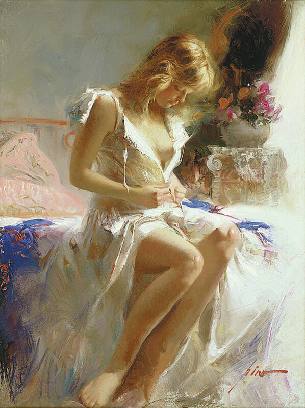 The tingle shooting down your back when you are struck by love, the moment you fall head over heels when seeing someone, or even appreciating someone’s beauty – all are aspects artists have touched upon, such as Peter Nixon, who captures the human figure with passion and energy. Pino is famously known for his romantic book cover art as well as his attractive, yet elegant, paintings of women.