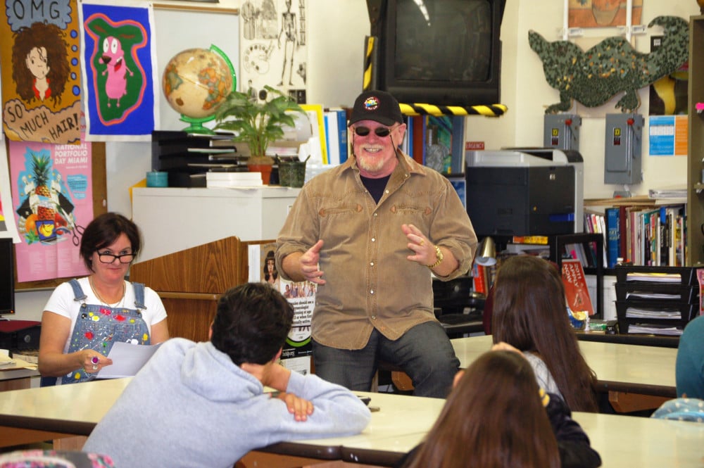 Above, Park West artist Graeme Stevenson speaks with students at Barbara Goleman Sr. High School about the art world