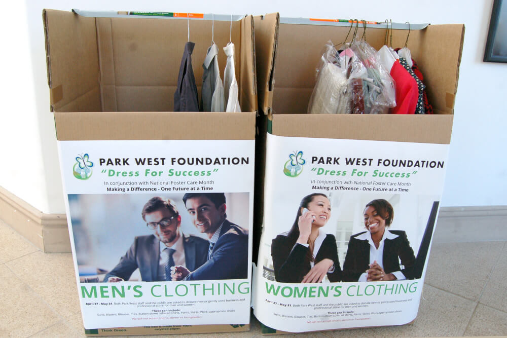 As foster care youth seek out new opportunities to better themselves, it’s difficult for them to invest in professional attire. The clothing drive is asking for donations of new or gently-used business-appropriate attire that young adults can use for job interviews and other professional settings. Collection boxes have been set up in Park West Gallery’s lobby for the duration of the drive.
