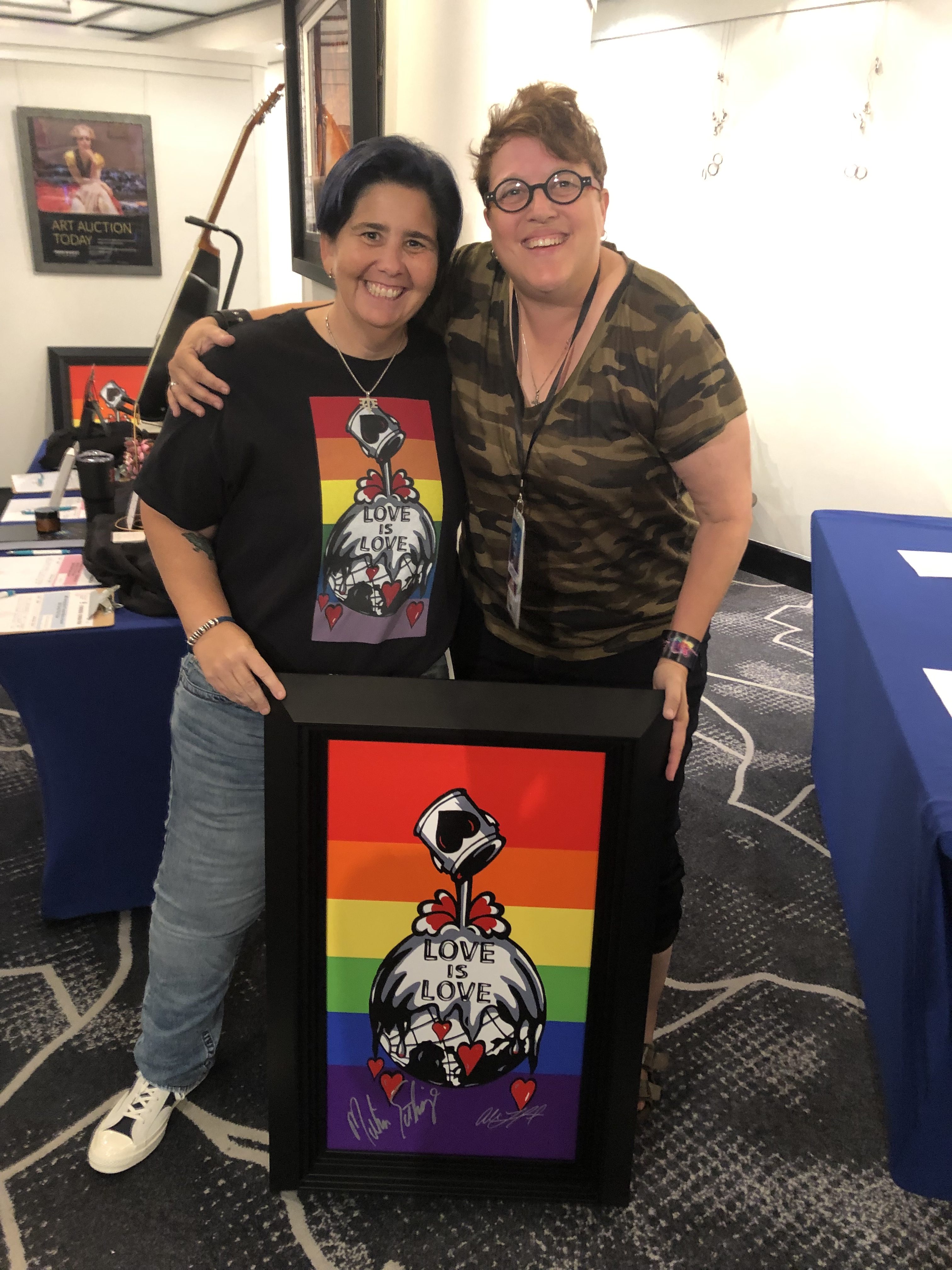 One original work by Lefcort, “Love is Love,” started at an opening bid of $700 and had competitive bidding until the sale price of $8,500! Additional prominent items that sold at the auction were an Etheridge signed guitar for $12,500 and Etheridge’s tour jacket that she wore for $4,500. Other works by Lefcort that sold were “Zebra,” “Giraffe,” “Woodstock” and several prints of “Love is Love.”