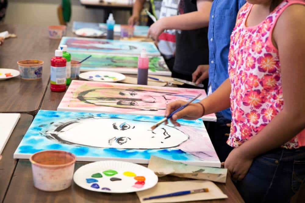 Students work on self portraits at San Bernardino’s Barton Elementary in California during a Turnaround Arts event. (Photo courtesy of T Studio)