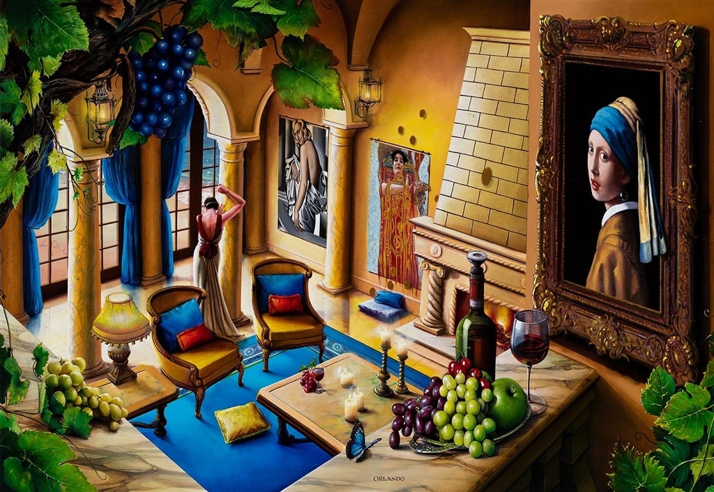 Enter the magical world of Orlando Quevedo where fantasy and reality seamlessly blend together with masterpieces from art history.