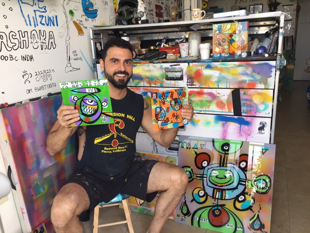 Lebo with works from his “Through the Looking Glass” series in his Miami studio (Photo courtesy of Lebo)