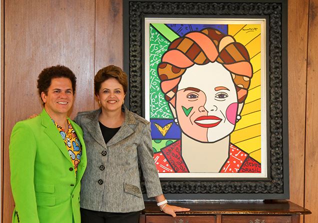 Above, Romero Britto with Brazil President Dilma Rousseff. Britto was recently named an ambassador for the 2016 Olympics. Photo courtesy of www.administradores.com.