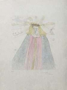 In the mid-1950s, Dalí met Drs. Giuseppe and Mara Albaretto, a wealthy couple who later became Dalí’s close friends and patrons. Although accounts differ about the chance meeting between Dalí and the Albarettos, it is agreed that the relationship grew because Dalí was uncharacteristically charmed by the Albarettos’ young daughter, Christiana.