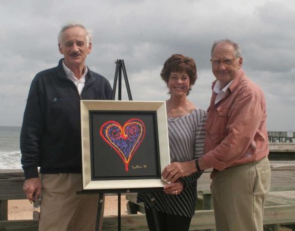 The St. Augustine Record tells of the English-born artist donating the work, “All About Love, XII,” to benefit MRWP. The artwork features a colorful heart, a recurring motif in Bull’s bold artwork – he will even use the symbol of love in his signature.
