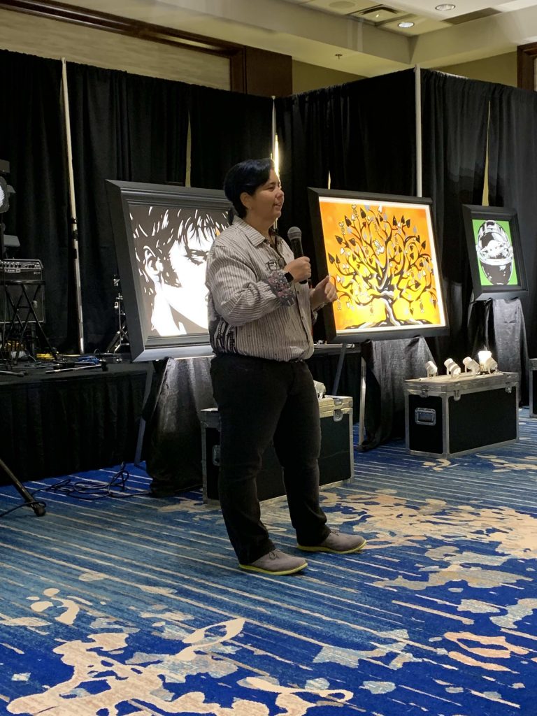 For Alli, interacting with collectors for over seven days on the riverboat was an exciting experience. When collectors respond positively to her artwork she said, “It’s indescribable. It’s beyond flattering, honestly, to know that something I created moves people in the way it does. I’ve seen happy tears, sad tears, immense smiles, so many amazing responses that it can be overwhelming. To think that something that kind of comes naturally to me is so meaningful to other people is amazing, and that’s what it is all about.”